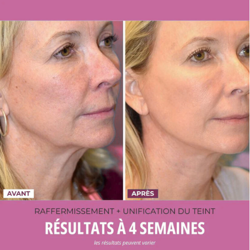 Après 2 semaines, mon visage est plus ferme, l’ovale mieux dessiné et mes rides du sourire sont nettement adoucies.