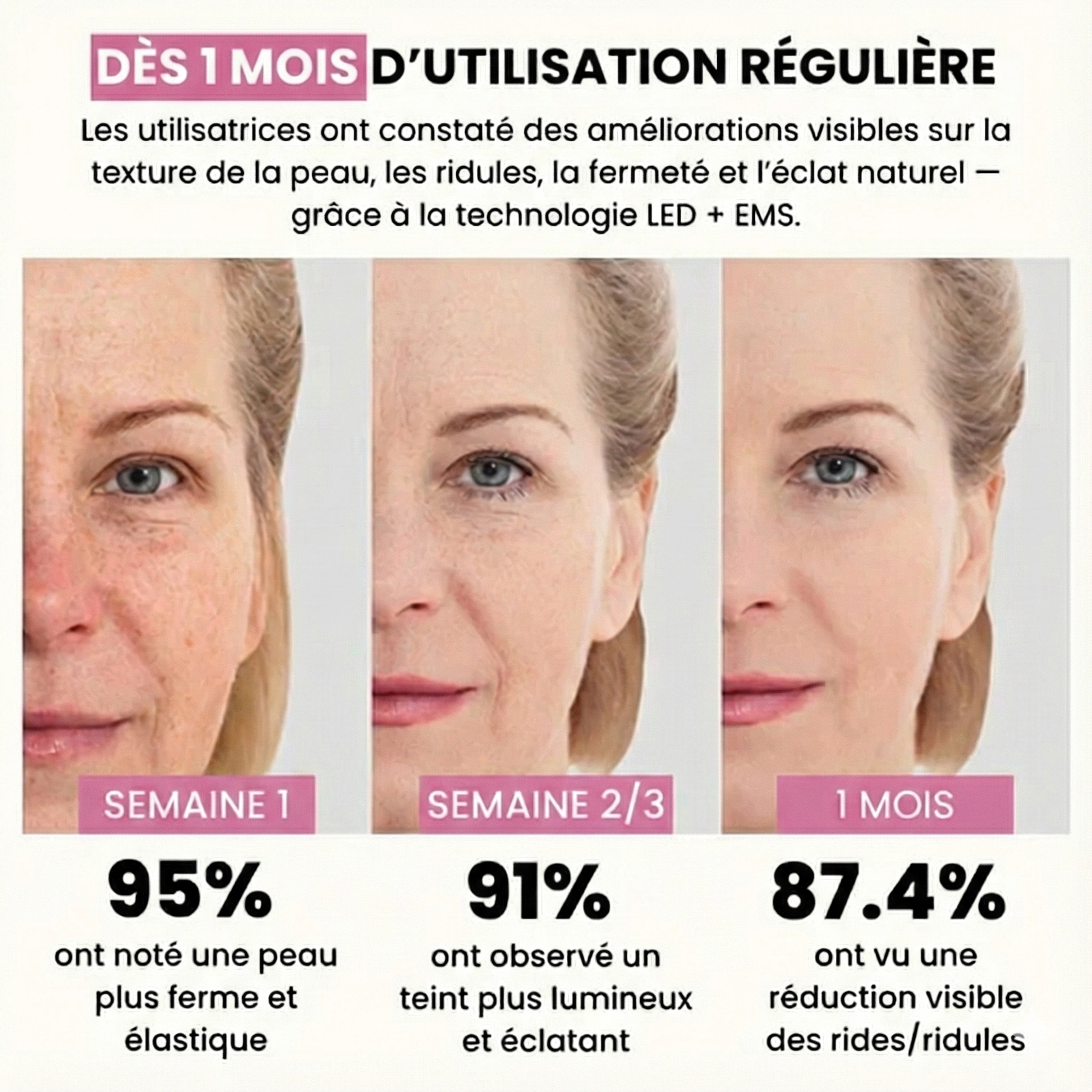J’ai 43 ans et je vois une vraie différence sur la fermeté de mon visage. Le contour de ma mâchoire est mieux dessiné, ma peau est plus tendue et plus lumineuse. Je ne pensais pas qu’un appareil maison pouvait donner un résultat aussi pro. Je recommande les yeux fermés