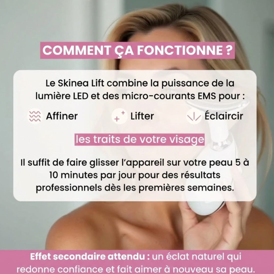 Je suis maman de trois enfants et ma peau était fatiguée. Le Skinea Lift m’a vraiment aidée à retrouver un visage reposé. J’adore l’utiliser le matin pour un effet réveil immédiat.
